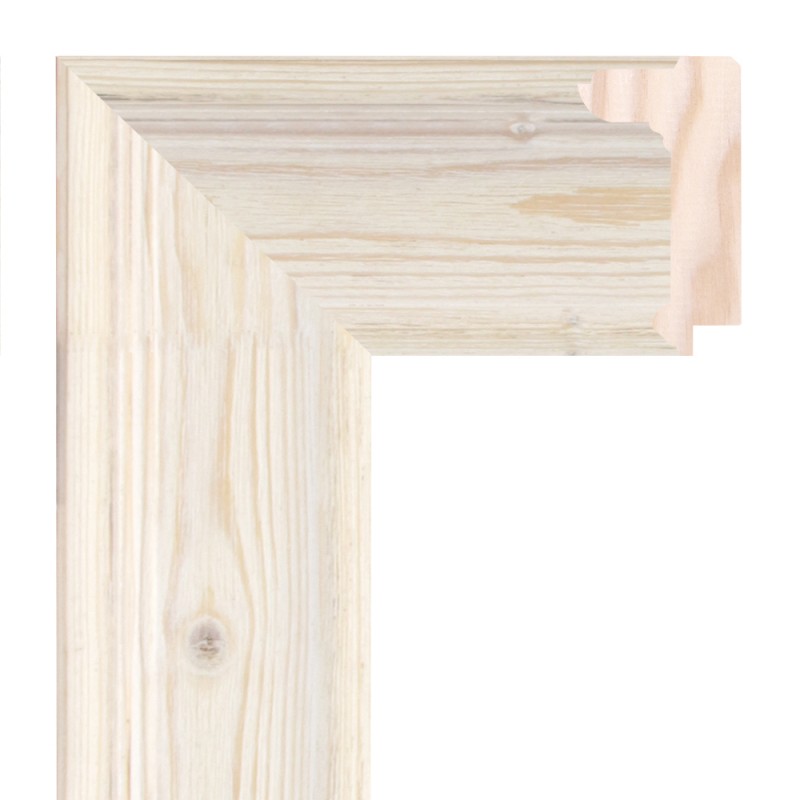 Glatte Bilderleiste aus Kiefernholz. Dekoriert in gestreiftem Weiß mit natürlichen Knoten. Geeignet zum Einrahmen dekorativer Gemälde, Fotos, Illustrationen usw.