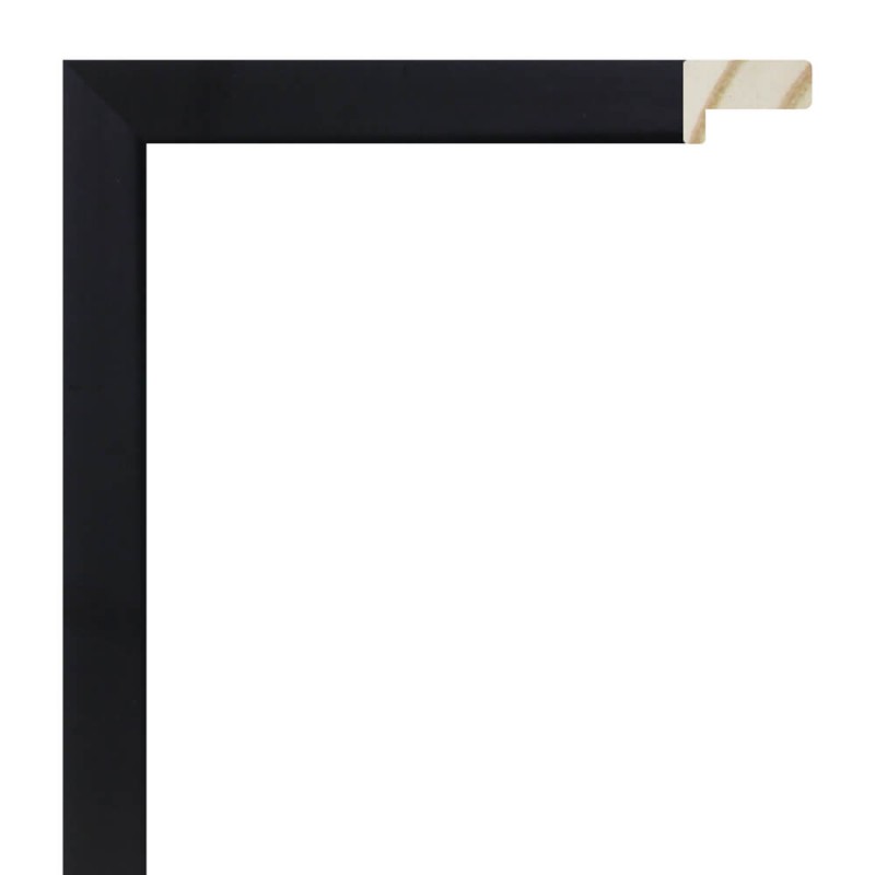 Bilderleisten glatt aus Fingerkiefernholz. Dekoriert in mattschwarzem Lack mit geschlossener Pore. Mit hohem Falz. Geeignet für die Einrahmung mit einem gewissen Abstand zwischen der Rückseite und dem Glas.