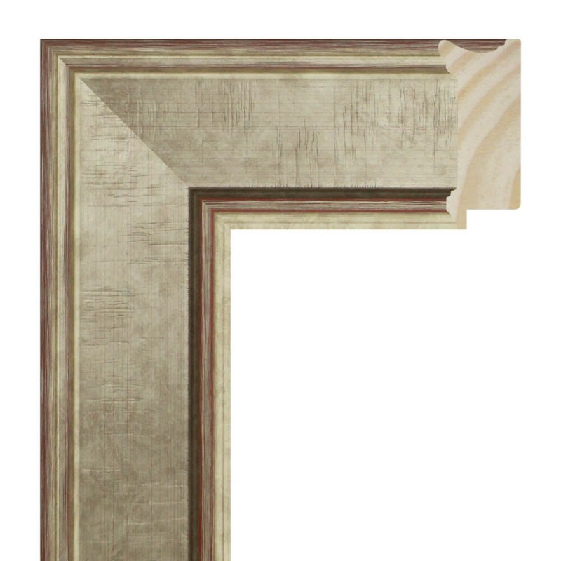 Bilderleisten glatt aus pinienfingerholz. Dekoriert in warmer Silberfarbe mit Terrakottuntergrund. Für Dekorationsbilder, Fotografien, Illustrationen usw. geeignet.