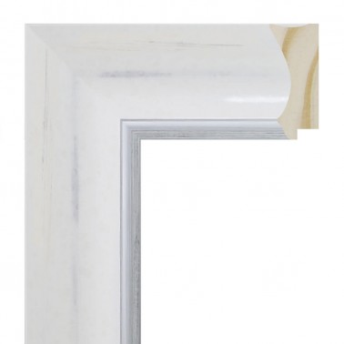 Bilderleisten glatt aus pinienfingerholz. Weiß verziert mit Silberpinsel und Silberrand. Für Dekorationsbilder, Fotografien, Illustrationen usw. geeignet.