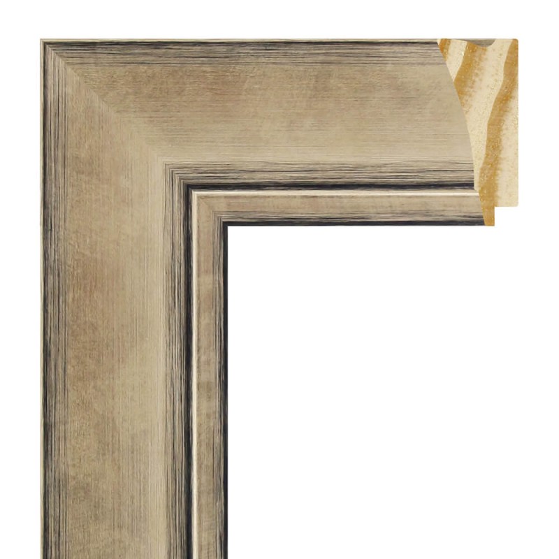 Bilderleisten glatt aus Fingerkiefernholz.Dekoriert in gebürstetem Champagnersilber mit schwarzem Hintergrund.Geeignet zum Einrahmen dekorativer Gemälde, Fotos, Illustrationen usw.