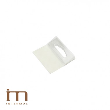 Hanger with high tear-resistant polyester backing, equipped with pressure-sensitive synthetic rubber adhesive for quick and secure mounting. Ideal for use on foam board panels, lightweight signage, and unframed graphic materials. Maximum load capacity: 1.5 kg. Supplied in packs of 10 units.