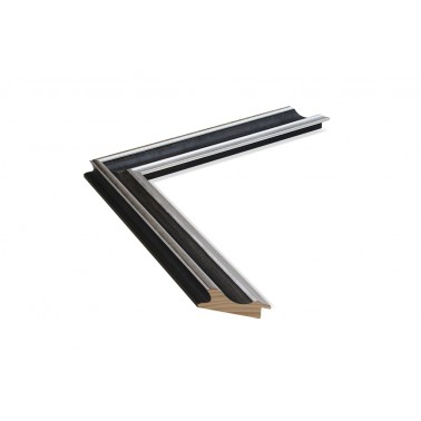 61831022 FRAME MOULDING PINE 6183 BLACK / SILVER Width: 25mm Height: 30mm Collection OLIVIA Smooth mould made of finger pine wood. Decorated in black colour combined silver. Suitable for decorative frames, photographs, illustrations, etc