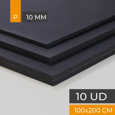 Foam board with black paper on both sides. black polystyrene core. 10 mm. thick. Size: 100x200 cm. box 10 sheets.