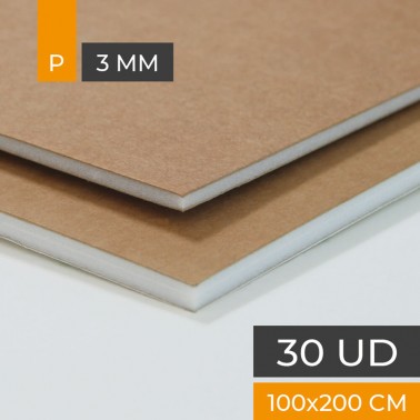 Foam board with matt white paper on both sides. White polystyrene core. 3 mm. thick. Size: A4 21X29,7cm. Box 30 sheets.