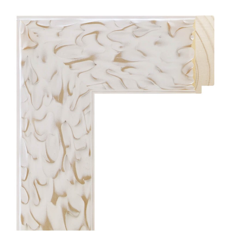 Ornated moulding made of finger-joint pine wood. Decorated in white colour aged decapado. Indicated for the frame of mirrors and large-format paintings.