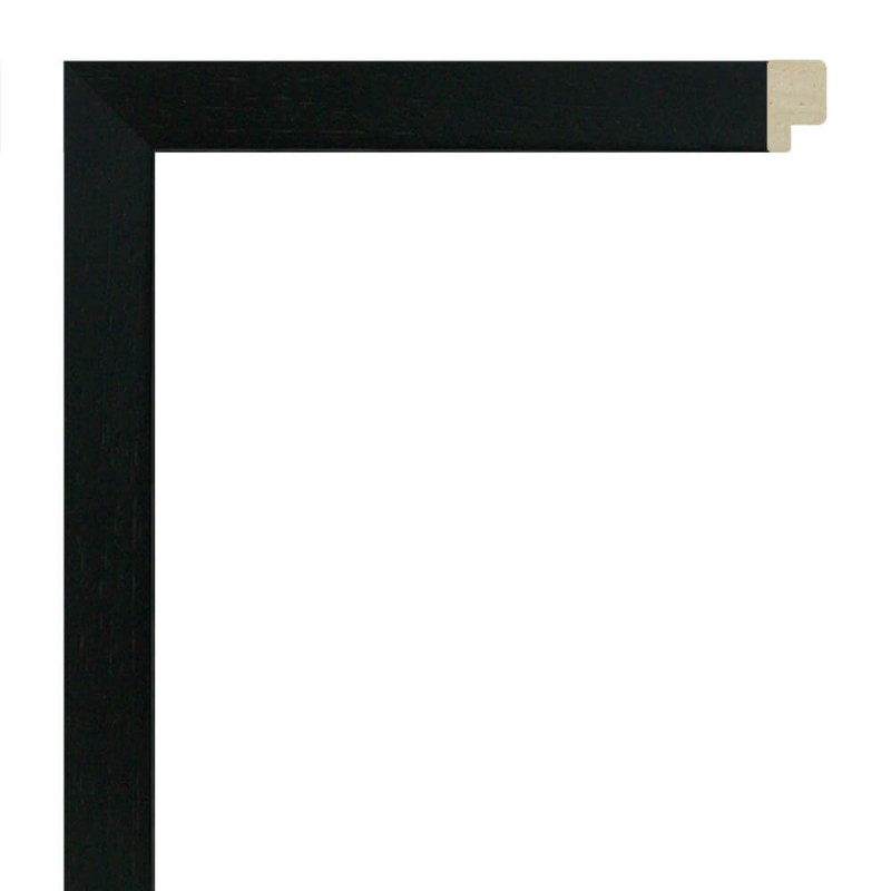 Smooth frame moulding made of ayous wood. Decorated in black. Suitable for decorative frames, photographs, illustrations, etc.