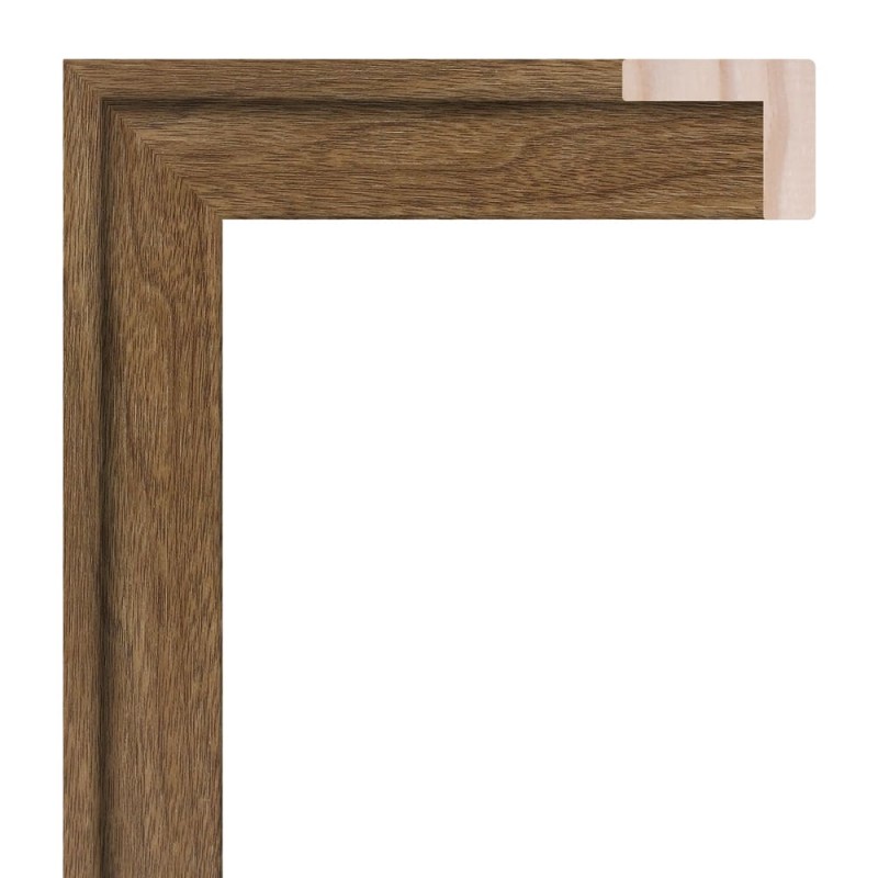 Smooth frame moulding made of finger-joint pine wood. Decorated in hazelnut color with wood texture imitation film. Indicated for use as an american box, box for canvas or frame in L.