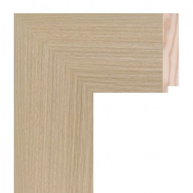 Smooth frame moulding made of finger-joint pine wood. Decorated with oak wood texture imitation film. Indicated for the frame of mirrors and large-format frames.