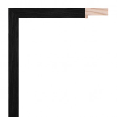 Frame moulding made of finger pine wood. Decorated in black color with wood texture imitation film. With high hedge. Suitable for vitrine frames.