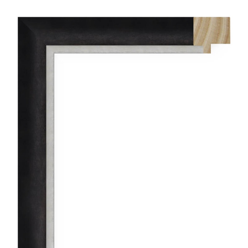 Smooth moulding made of finger-jointed pine wood. Decorated in anthracite with a silver edge. Suitable for framing decorative paintings, photographs, illustrations, etc.