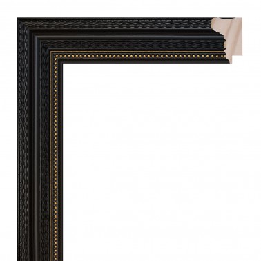 Engraved moulding made of finger-joint pine wood. Black finish with gold edge. Suitable for framing decorative paintings, photographs, illustrations, etc.