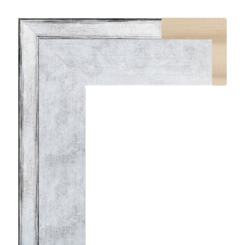 Smooth frame moulding made of ayous wood. Decorated in sterling silver with background in black. Indicated for use as an American box, canvas drawer or frame in l.