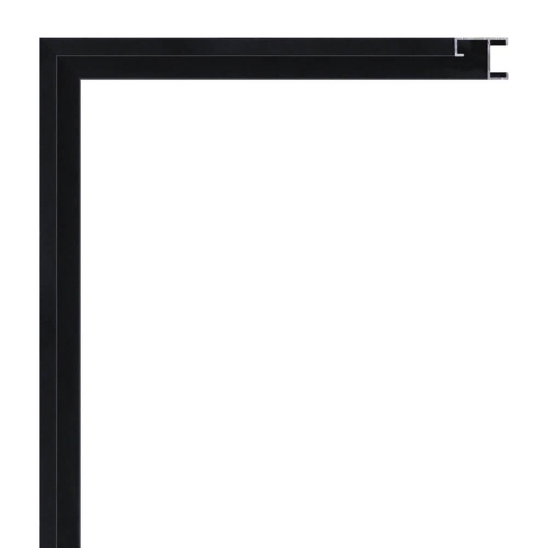 Smooth moulding made of aluminum. Decorated lacquered in matt black. Suitable for frames of decorative paintings, photographs, illustrations, etc.