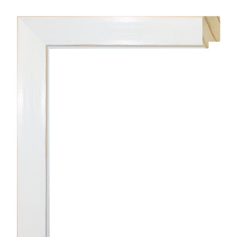 Smooth moulding made of finger-joint pine wood. Decorated in matt white color. Suitable for frames of decorative paintings, photographs, illustrations, etc.