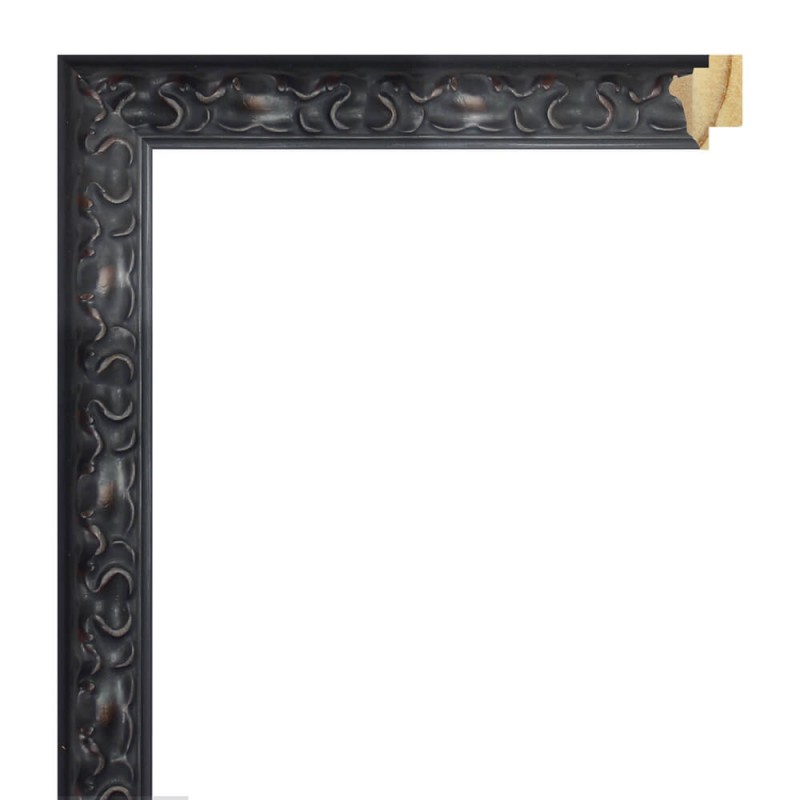 Ornated moulding made of finger-joint pine wood. Decorated in black colour with walnut background. Suitable for frames of decorative paintings, photographs, illustrations, etc.