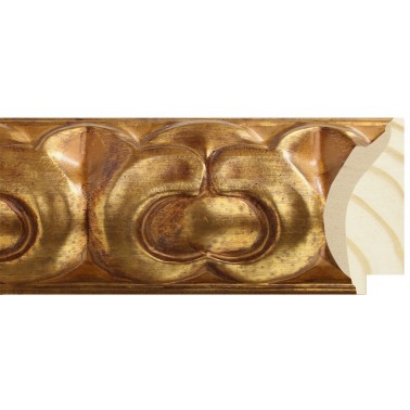 Ornated moulding made of finger-joint pine wood. Decorated in color old gold aged to bitumen. Indicated for the frame of mirrors and large-format paintings.
