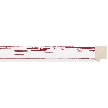 Smooth frame moulding made of ayous wood. Decorated in white decaping with the background in red. Suitable for frames of decorative paintings, photographs, illustrations, etc.