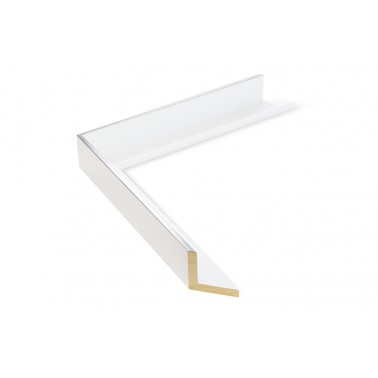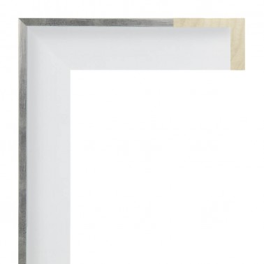 Frame moulding made of ayous wood. Decorated matt white lacquer with closed pore and silver profile. Indicated for use as an American box, canvas drawer or frame in "L".