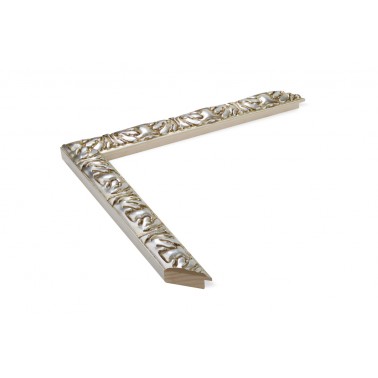 5334650 MOLDURA PINO 5334 PLATA BRILLANTE ENVEJECIDA Ancho: 40mm Alto: 23mm Colección BARROCO Moldura grabada fabricada en madera de pino finger. Decorado en color plata brillante envejecida. Adecuada para enmarcaciones de cuadros...