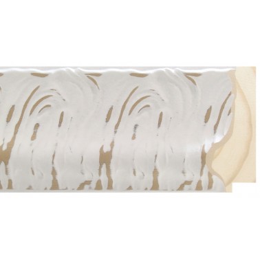 Moldura grabada fabricada en madera de pino finger. Decorado en color plata cálida envejecida. Adecuada para enmarcaciones de cuadros decorativos, fotografías, ilustraciones, etc.