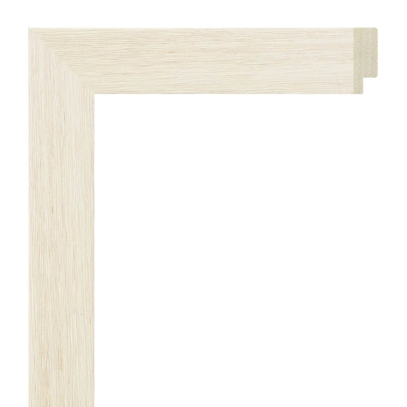 Moldura lisa fabricada en madera de ayous. Decorado en color blanco arañado. Adecuada para enmarcaciones de cuadros decorativos, fotografías, ilustraciones, etc.