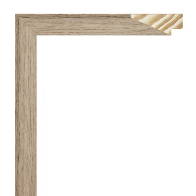 Moldura lisa fabricada en madera de pino finger. Decorado en chapa roble natural. Adecuada para enmarcaciones de cuadros decorativos, fotografías, ilustraciones, etc.