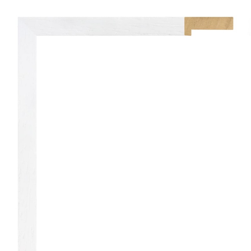 Moldura lisa fabricada en madera de ayús. Decorado en color blanco. Con galce alto. Adecuada para enmarcaciones tipo vitrina.