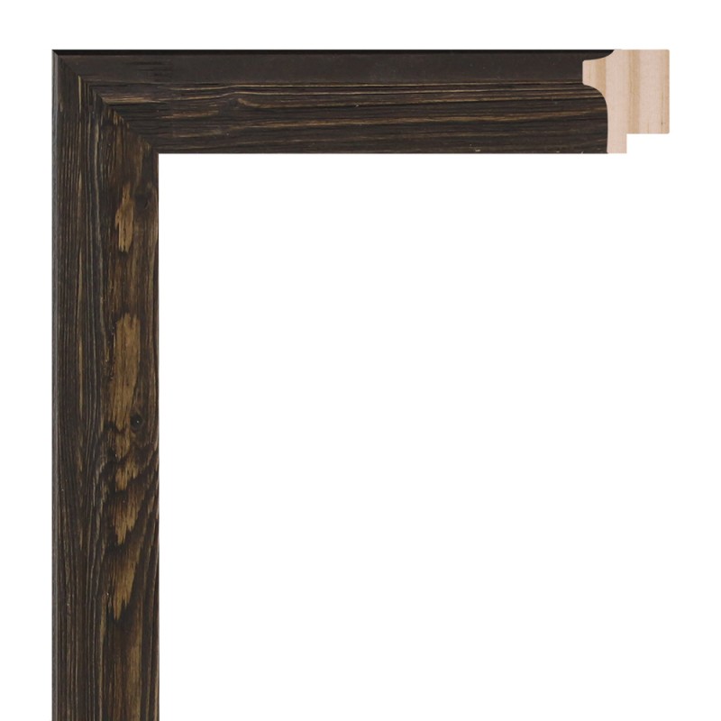 Moldura lisa fabricada en madera de pino finger. Decorado en color negro encerado con nudos naturales. Adecuada para enmarcaciones de cuadros decorativos, fotografías, ilustraciones, etc.