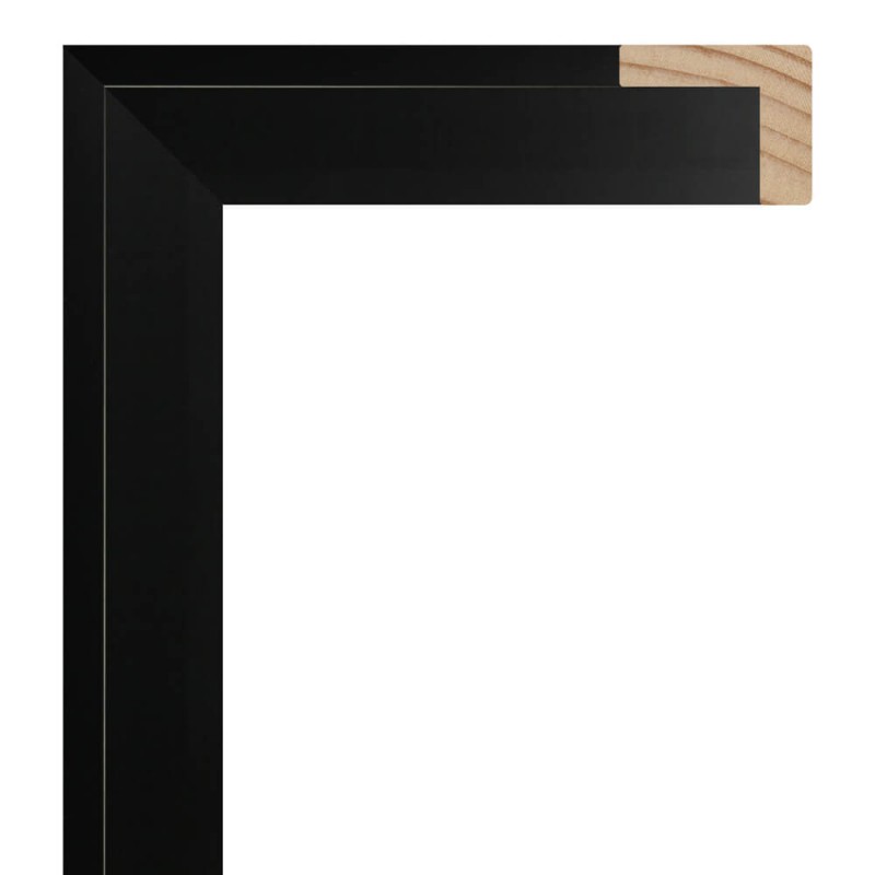 Moldura lisa fabricada en madera de pino finger. Decorado lacado en color negro mate con el poro cerrado. Indicada para uso como caja americana, cajón para lienzos o marco en "L".