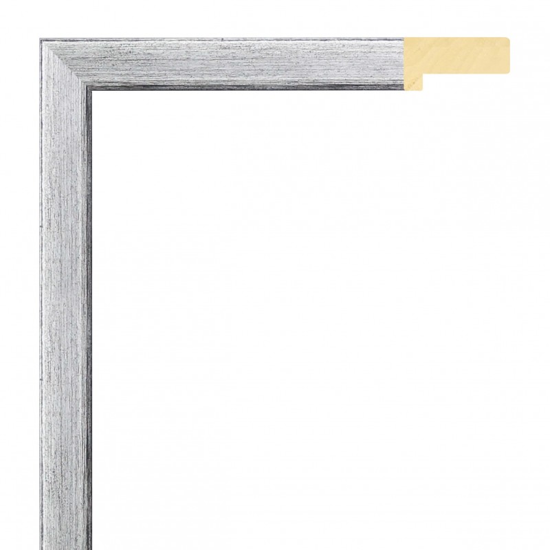Moldura lisa fabricada en madera de ayous. Decorado en color plata fría rozada con el fondo en negro. Adecuada para enmarcaciones tipo vitrina.
