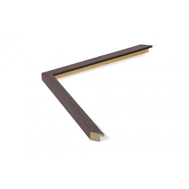 Moldura lisa fabricada en madera de pino finger. Decorado en color nogal patinado en gris. Adecuada para enmarcaciones de cuadros decorativos, fotografías, ilustraciones, etc.