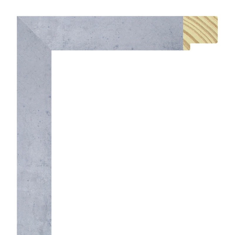 Moldura lisa fabricada en madera de pino finger. Decorado en piedra patinada color gris oscuro con textura rugosa. Con galce alto. Indicada para enmarcaciones con cierta separación entre la trasera y el vidrio.