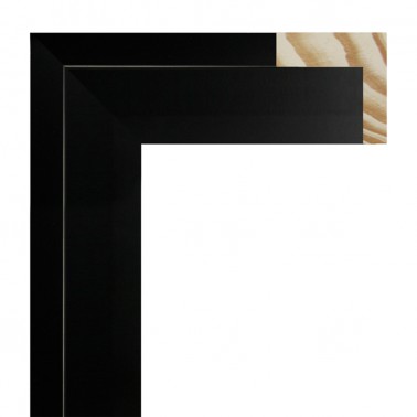 Moldura lisa fabricada en madera de pino finger. Decorado en color negro rozado texturizado. Con galce alto. Indicada para enmarcaciones con cierta separación entre la trasera y el vidrio.