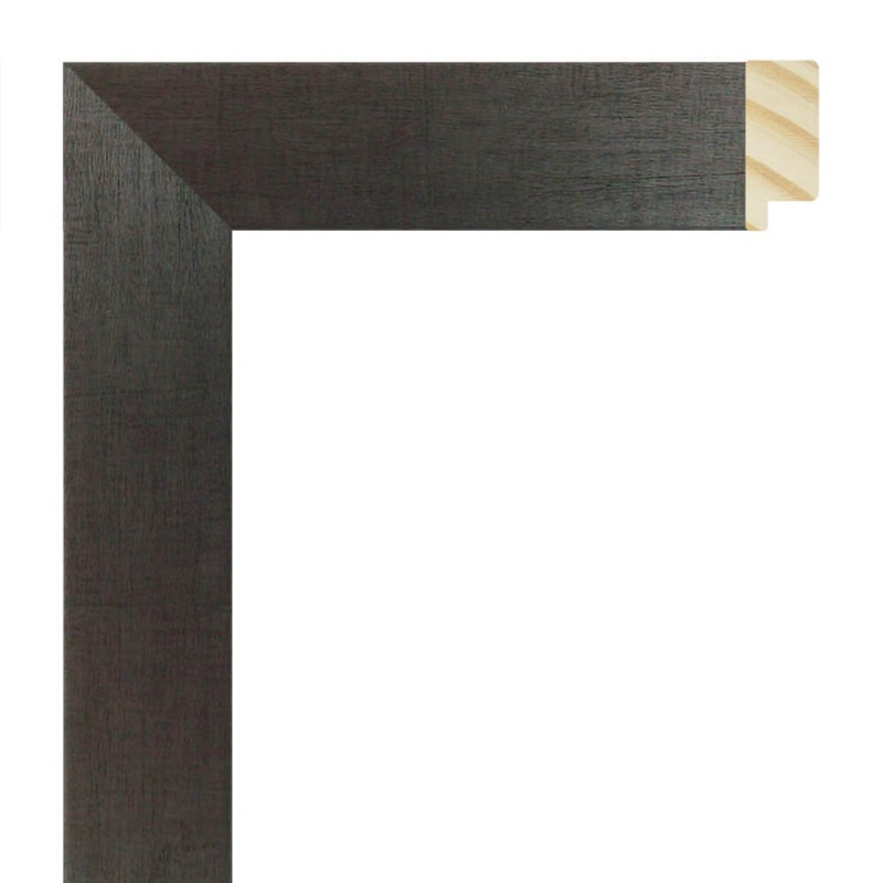 Moldura lisa fabricada en madera de pino finger. Decorado en color plata oscura. Adecuada para enmarcaciones de cuadros decorativos, fotografías, ilustraciones, etc.