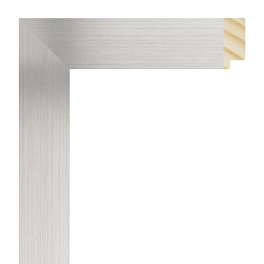 Moldura lisa fabricada en madera de pino finger. Decorado en color plata imitación aluminio. Adecuada para enmarcaciones de cuadros decorativos, fotografías, ilustraciones, etc.
