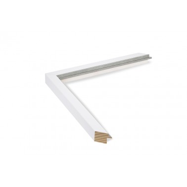 Moldura lisa fabricada en madera de pino finger. Decorado en color blanco mate con filo en plata. Adecuada para enmarcaciones de cuadros decorativos, fotografías, ilustraciones, etc.