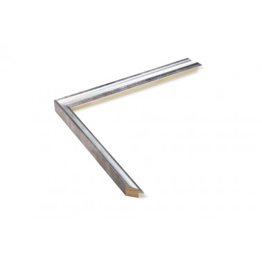 Moldura lisa fabricada en madera de pino finger. Decorado en color plata fría con los cantos en acero. Adecuada para enmarcaciones de cuadros decorativos, fotografías, ilustraciones, etc.