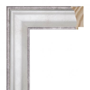 Moldura lisa fabricada en madera de pino finger. Decorado en color plata fría con los cantos en acero. Adecuada para enmarcaciones de cuadros decorativos, fotografías, ilustraciones, etc.