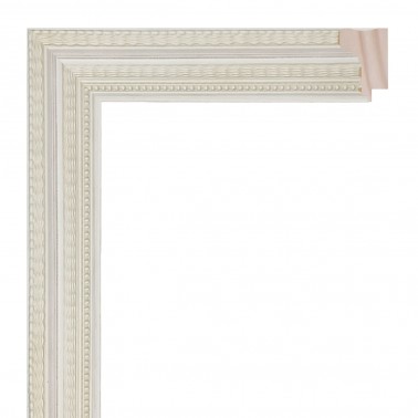 Baguette sculptée en bois de pin finger. Finition blanc vieilli. Adaptée pour l’encadrement de tableaux décoratifs, photographies, illustrations,...