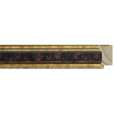 Baguette sculptée en bois de pin finger. Finition doré vieilli. Adaptée pour l’encadrement de tableaux décoratifs, photographies, illustrations,...