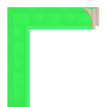 Baguette lisse en bois de pin à joints finger. Décorée en vert fluo. Adaptée à l’encadrement de tableaux décoratifs, photographies, illustrations,...