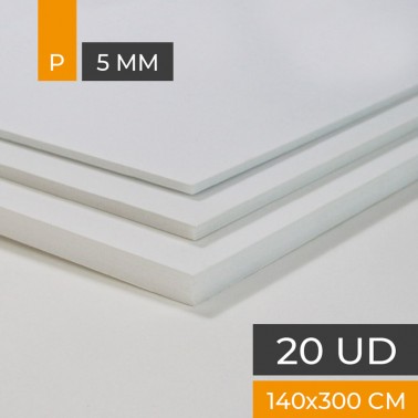 Carton de qualité supérieure avec papier blanc mat sur les deux côtés. noyau de polystyrène blanc. 5 mm d'épaisseur. taille en fer 140x300 cm. boîte 20 plaques.