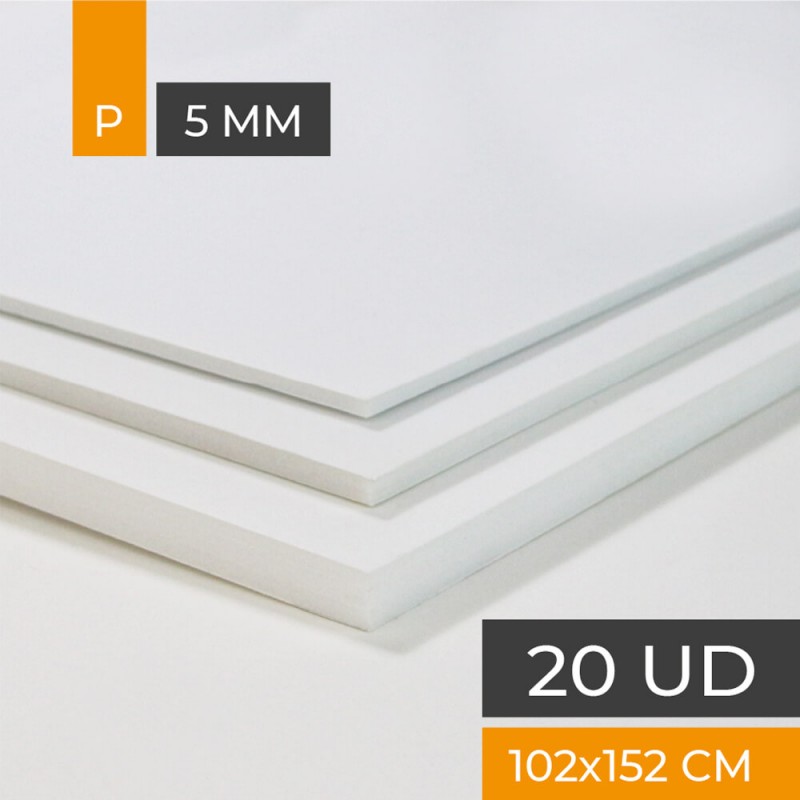 Carton de qualité supérieure avec papier blanc sans acides des deux côtés. noyau de polystyrène blanc. 5 mm d'épaisseur. taille en fer 102x152 cm. boîte 20 plaques.