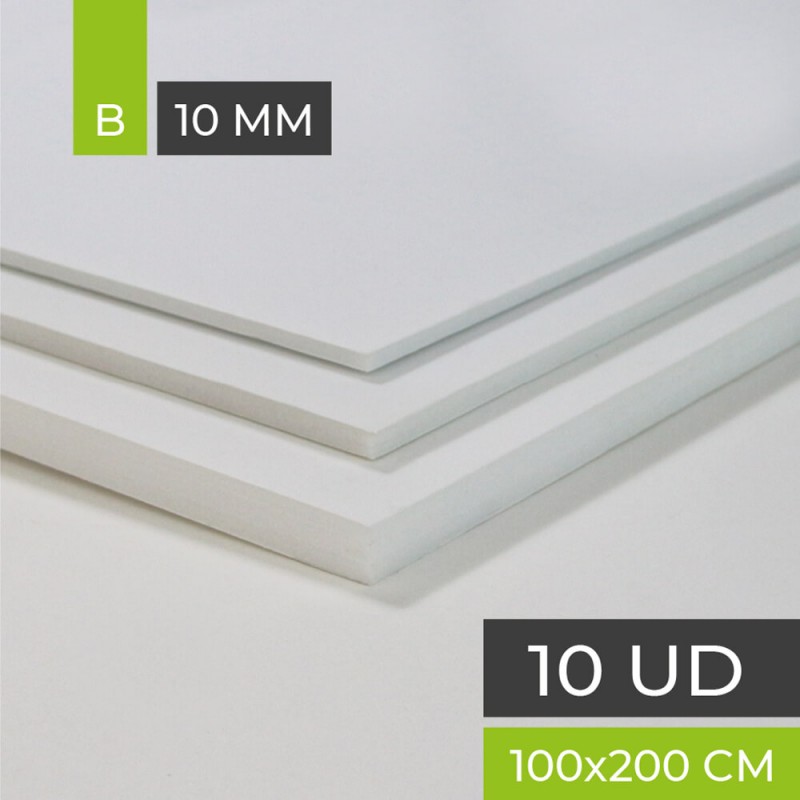 Carton avec papier blanc mat sur les deux côtés. noyau de polystyrène blanc. 10 mm d'épaisseur. fer 100x200 cm. boîte 10 plaques.