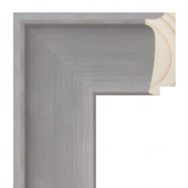 5302665 BAGUETTE PIN 5302 PLATA ALUMINIO ESPALDA OSCURA Largeur: 53mm Hauteur: 22mm Collection CURVE Moulure lisse en bois de pin abouté. décoré en aluminium argenté avec dos foncé. adapté aux cadres décoratifs, photographies, illustrations, etc.