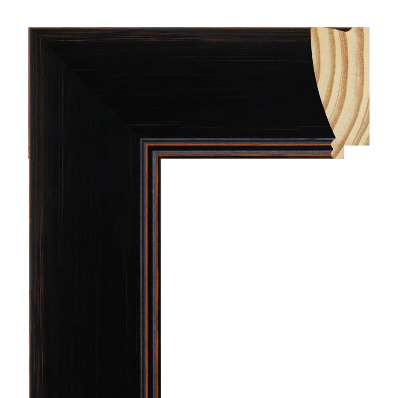 Moulure lisse en bois de pin abouté. décoré en couleur noire avec fond orange. adapté aux cadres de peintures décoratives, photographies, illustrations, etc.