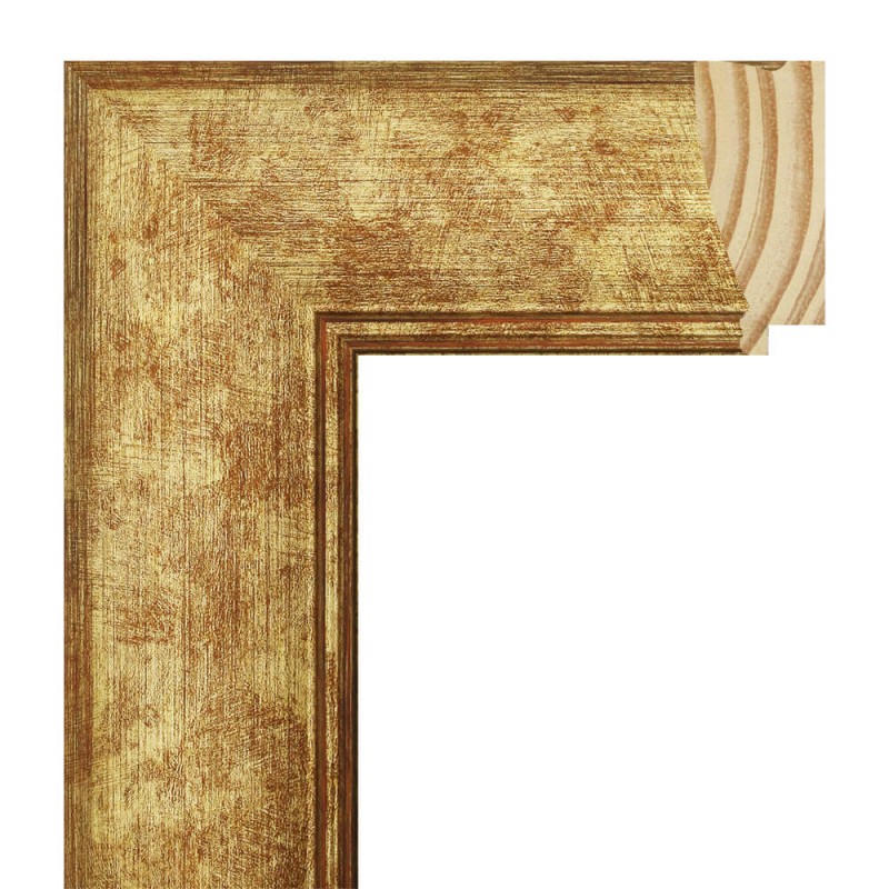 Moulure lisse en bois de pin abouté. décorée en couleur or avec fond orange. adapté aux cadres décoratifs, photographies, illustrations, etc.