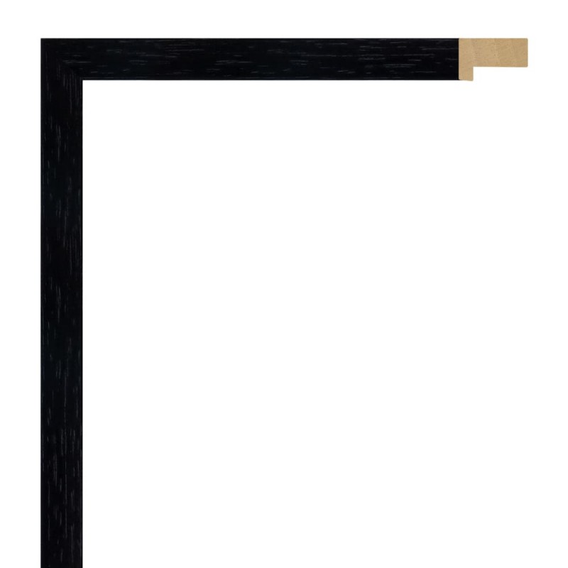 Moulure lisse en bois d'ayous. décoré noir mat avec pore ouvert. Avec une grande galce. Indiqué pour les cadres avec une certaine séparation entre le dos et le verre.