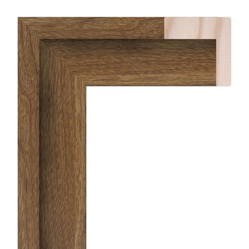 Moulure lisse en bois de pin abouté. Décoré en couleur noisette avec un film imitation texture bois. Indiqué pour être utilisé comme boîte américaine, tiroir à toile ou cadre en L.